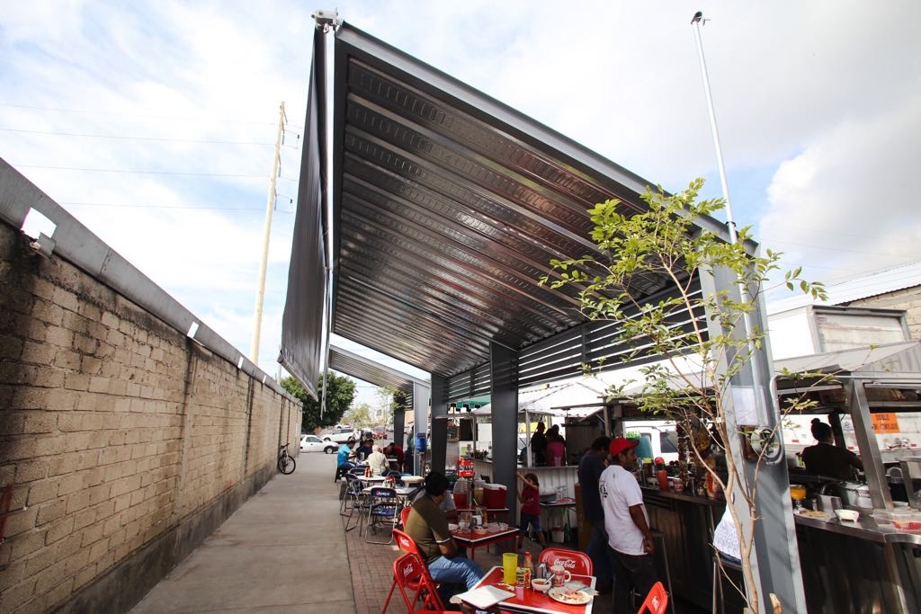 Banquetas con árboles.